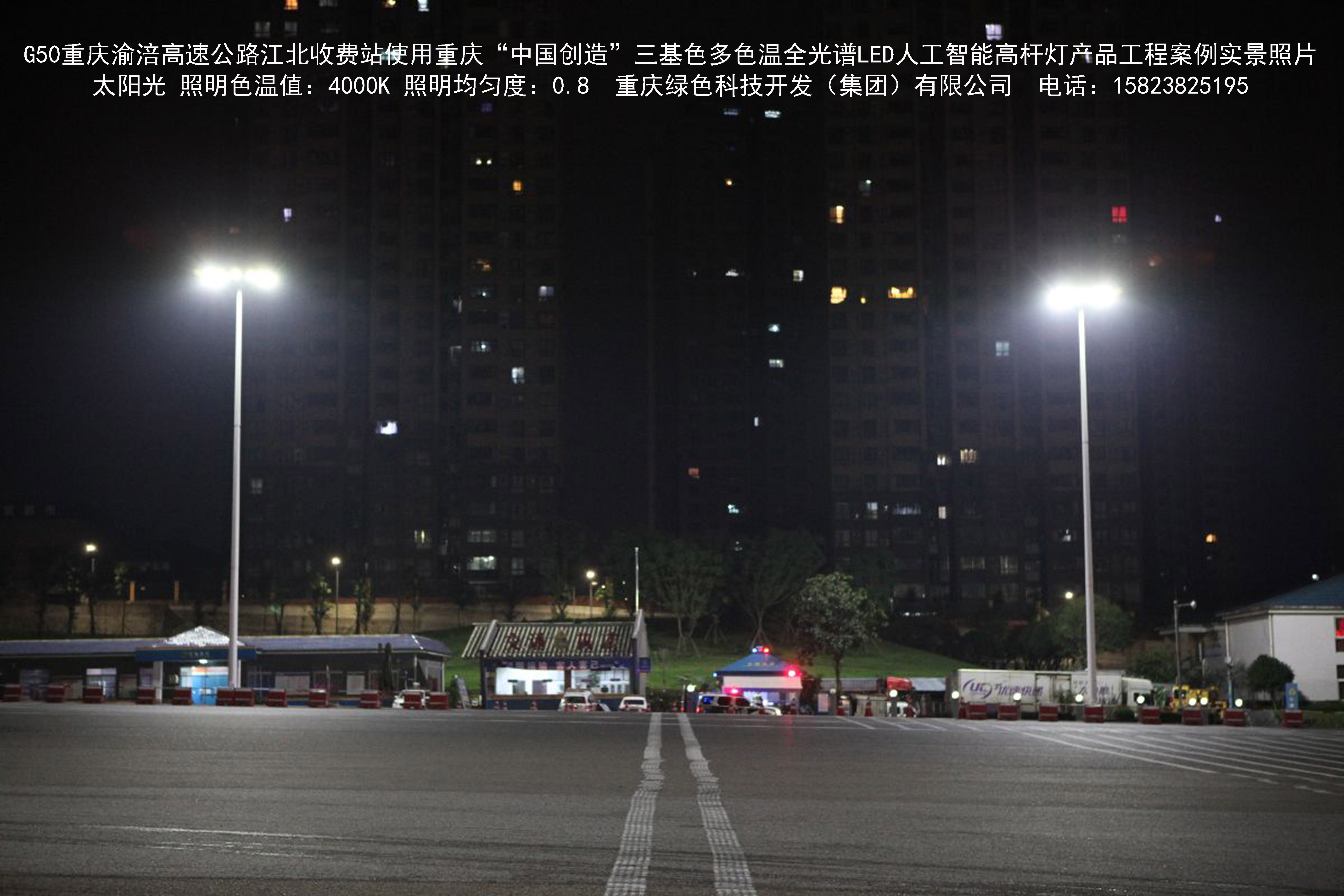 2016年8月,重慶渝涪高速公路有限公司使用我司自主研發(fā)制造的重慶“中國創(chuàng)造”三基色多色溫全光譜LED人工智能高桿燈系列產(chǎn)品,實施了市政設(shè)施品質(zhì)提升工程。該工程已全面竣工。工程實施后,極大地提高了道路照明清晰度、燈光均勻度、舒適度。通過智能終端實現(xiàn)單燈感知、線纜防盜報警,與原高壓鈉燈相比,節(jié)能率60%以上,有效解決了關(guān)閉控制回路或間隔關(guān)燈方式造成的照明暗區(qū),確保行人和車輛通行的安全,實現(xiàn)城市路燈照明系統(tǒng)的智能化管理,推進了智慧城市建設(shè)。