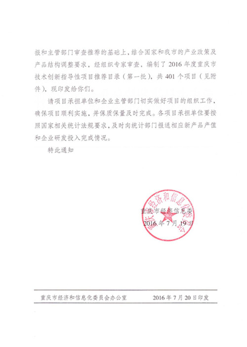 熱烈祝賀重慶綠色科技開(kāi)發(fā)有限公司申報(bào)的“互聯(lián)網(wǎng)+”多色溫防霧霾、亮度遙調(diào)新一代LED路燈及遠(yuǎn)程智能控制系統(tǒng)成功列入《2016年度重慶市技術(shù)創(chuàng)新指導(dǎo)性項(xiàng)目》