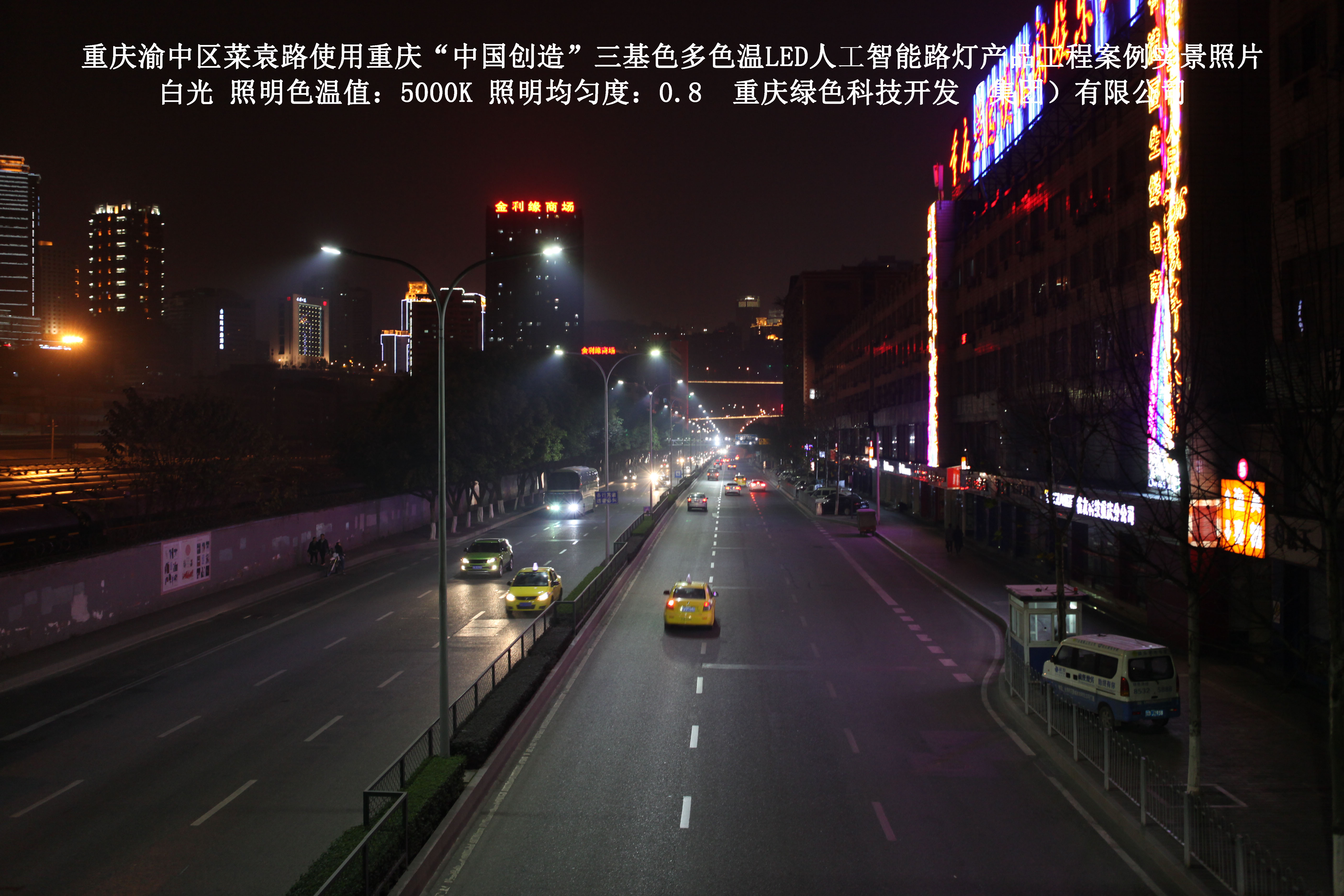 2013年10月,重慶市城市照明管理局使用了我司研發(fā)制造的重慶“中國創(chuàng)造”三基色多色溫LED人工智能路燈,對渝中區(qū)菜袁路實施了綠色照明科技節(jié)能改造工程,該工程已全面竣工。工程實施后,極大地提高了城市照明清晰度、燈光均勻度、舒適度。通過智能終端實現(xiàn)單燈感知、線纜防盜報警,與原高壓鈉燈相比,節(jié)能率60%以上,有效解決了關閉控制回路或間隔關燈方式造成的照明暗區(qū),確保行人和車輛通行的安全,實現(xiàn)城市路燈照明系統(tǒng)的智能化管理,推進了智慧城市建設。