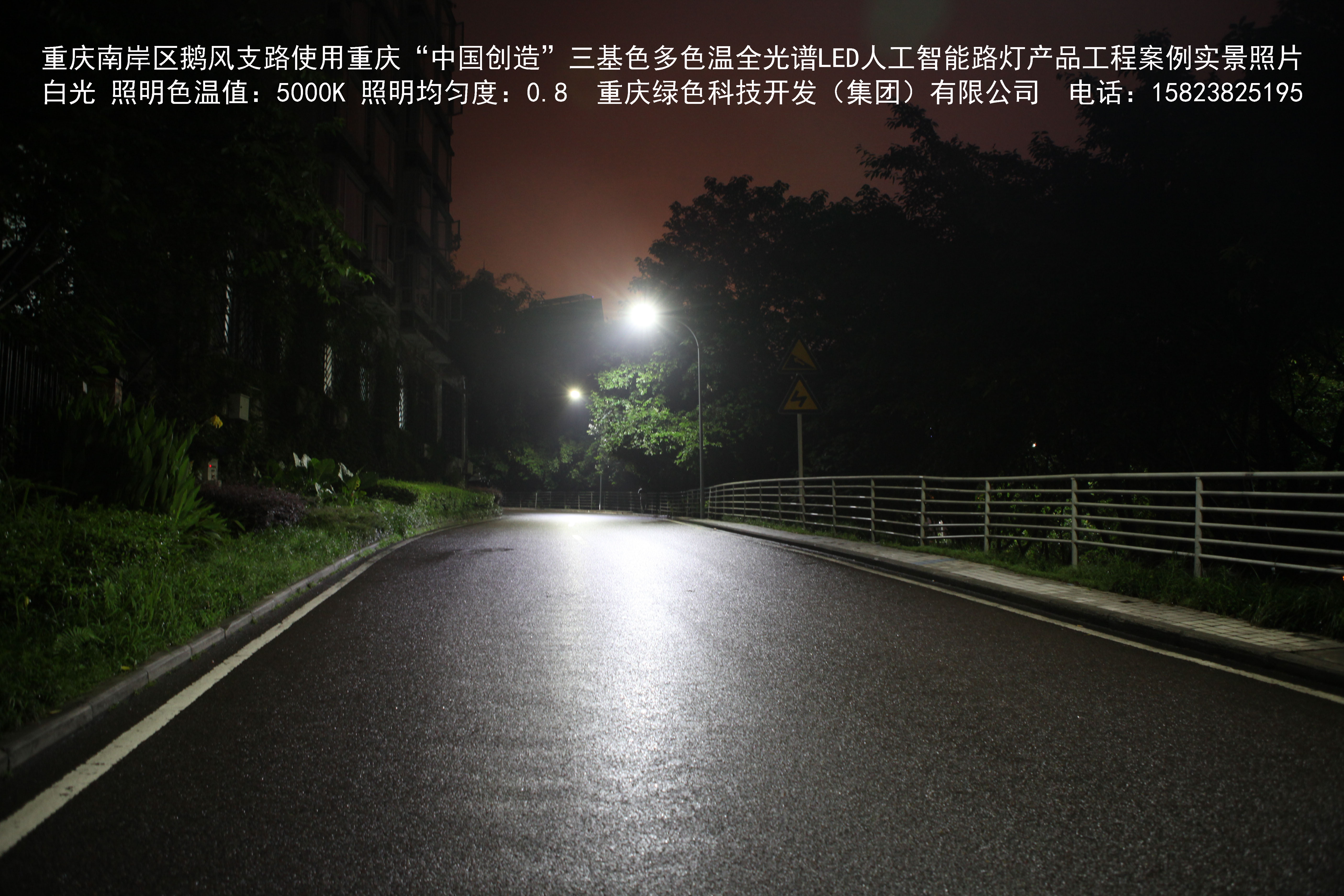 重慶市南岸區(qū)鵝風(fēng)支路使用我司研造的重慶“中國(guó)創(chuàng)造”三基色多色溫全光譜LED人工智能路燈產(chǎn)品工程案例