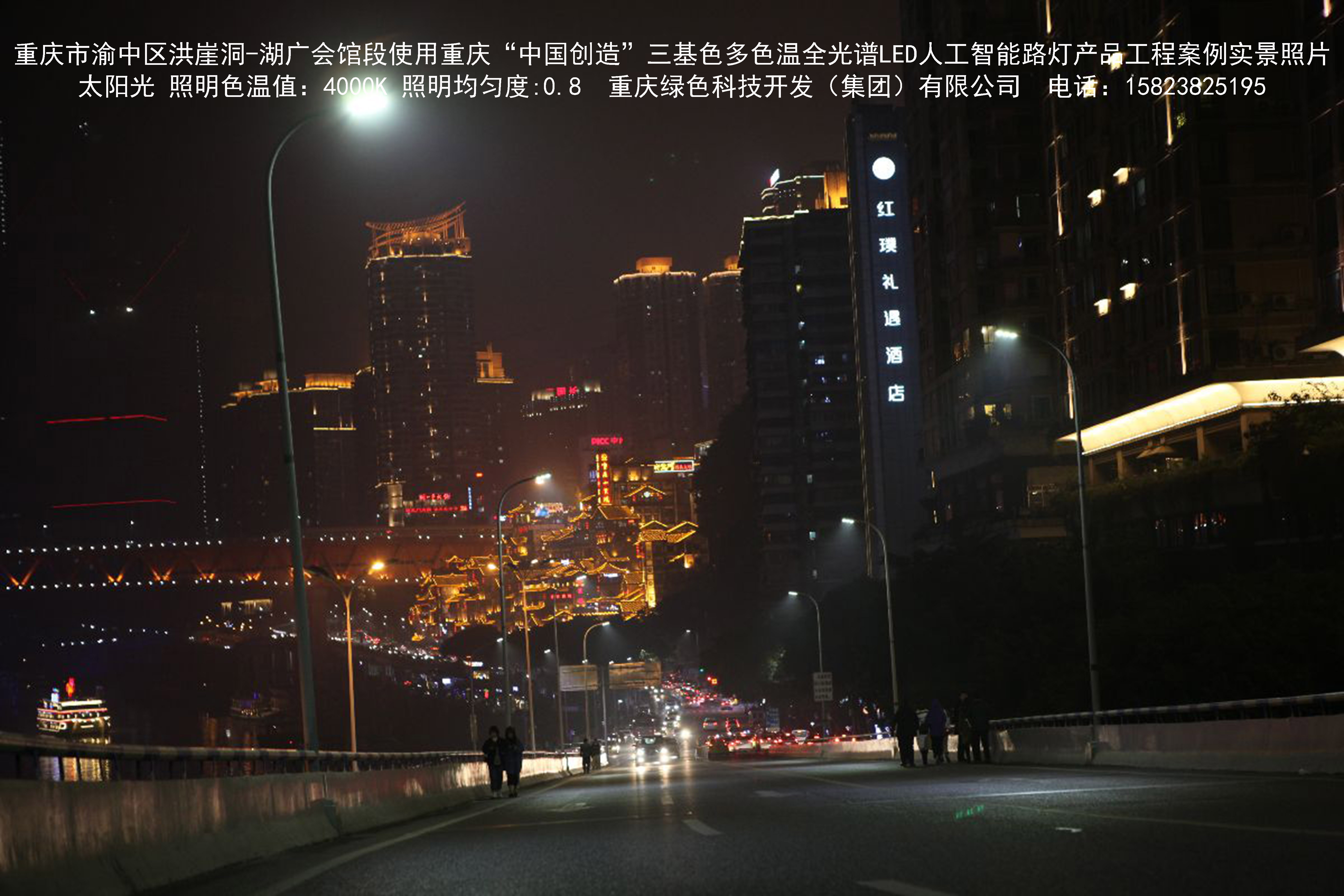 2018年12月,重慶市城市照明管理局使用我司自主研發(fā)制造的重慶“中國創(chuàng)造”三基色多色溫全光譜LED人工智能路燈系列產(chǎn)品,實施了渝中區(qū)市政設施品質提升工程。該工程已全面竣工。工程實施后,極大地提高了城市照明清晰度、燈光均勻度、舒適度。通過智能終端實現(xiàn)單燈感知、線纜防盜報警,與原高壓鈉燈相比,節(jié)能率60%以上,有效解決了關閉控制回路或間隔關燈方式造成的照明暗區(qū),確保行人和車輛通行的安全,實現(xiàn)城市路燈照明系統(tǒng)的智能化管理,推進了智慧城市建設。