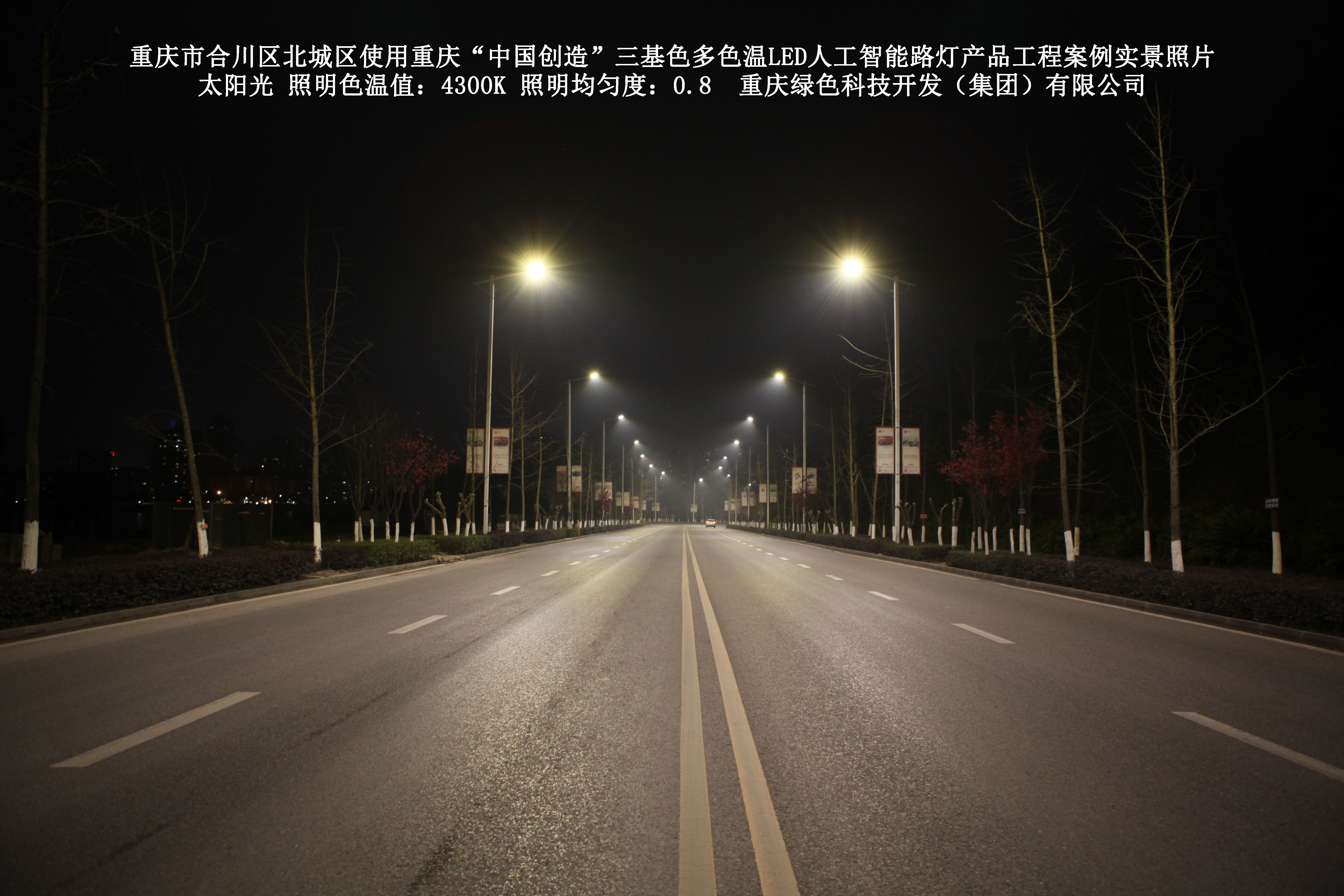 重慶市合川北城區(qū)使用我司研造的重慶“中國創(chuàng)造”三基色多色溫 LED人工智能路燈產(chǎn)品工程案例